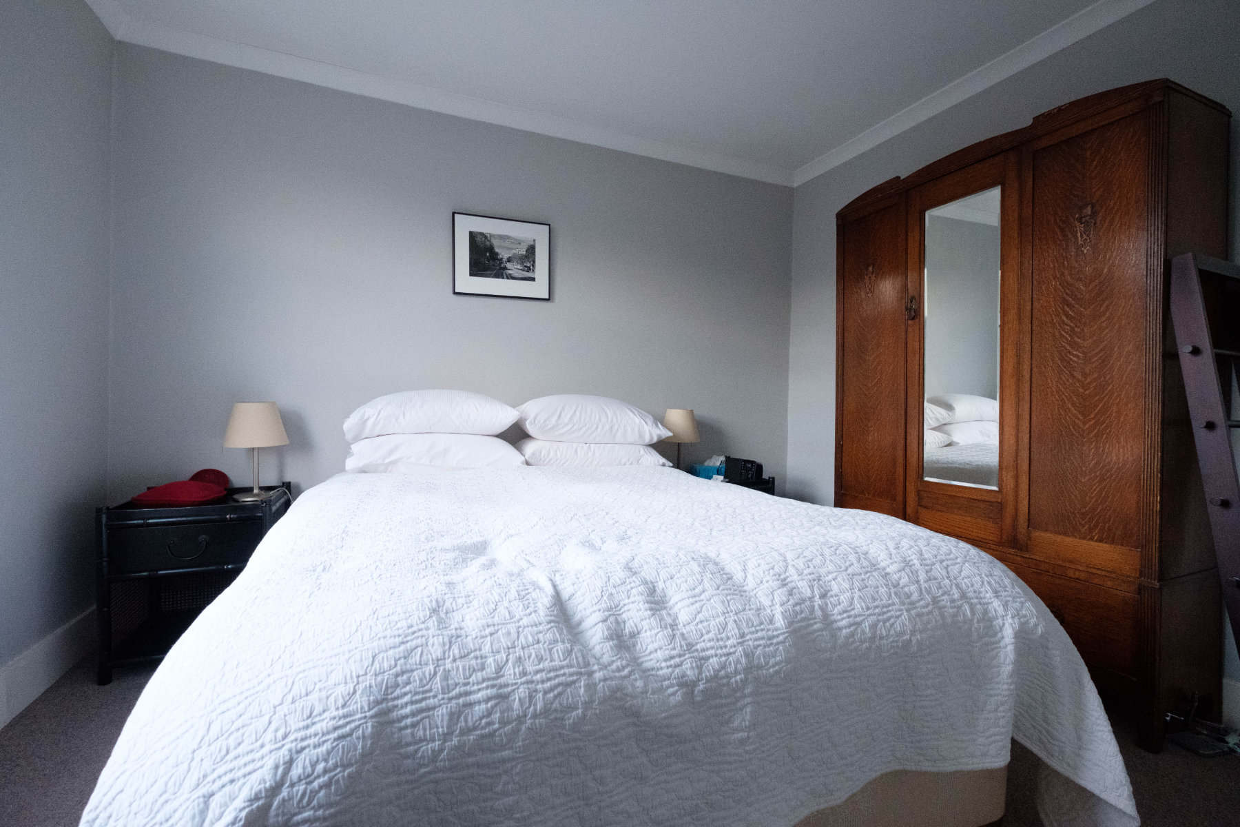 The garden bedroom has a queen sized bed with a window looking out over the back garden.