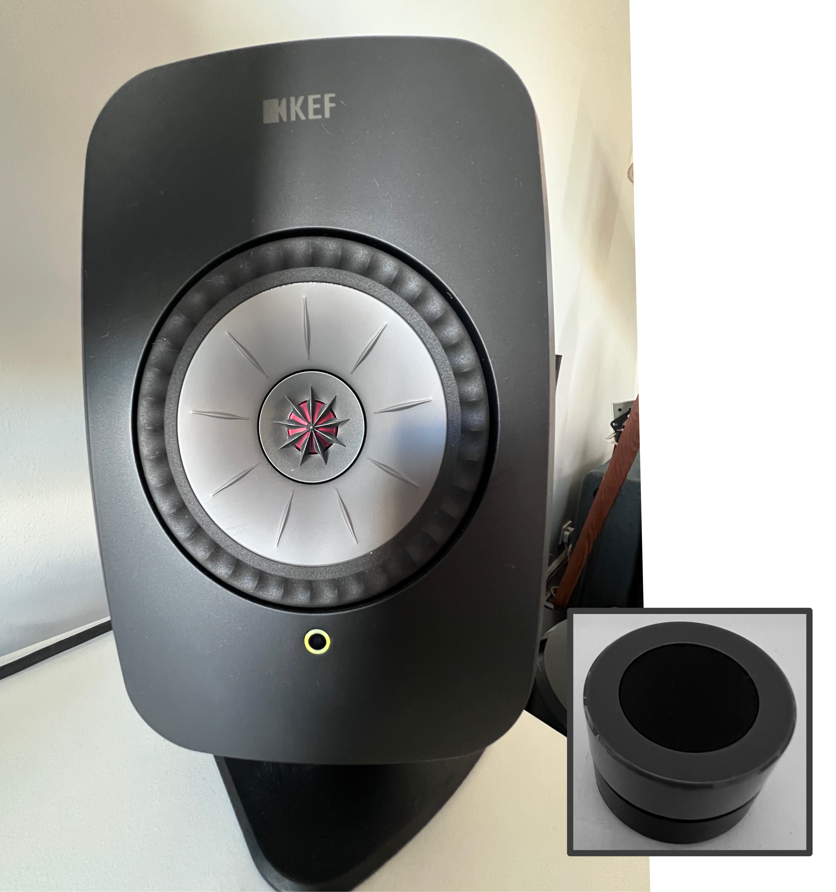 In the main picture above you see the speaker which is in an ON state and the source is set to AUX. This is the setting you'll want if you're listening through the monitor (which is the highest quality method). The state and source are both indicated by the color of the icon of the right speaker (believe it or not the icon on the left speaker only turns on when there's a problem ... not the best design choice but they forgot to ask for my opinion before producing these speakers).