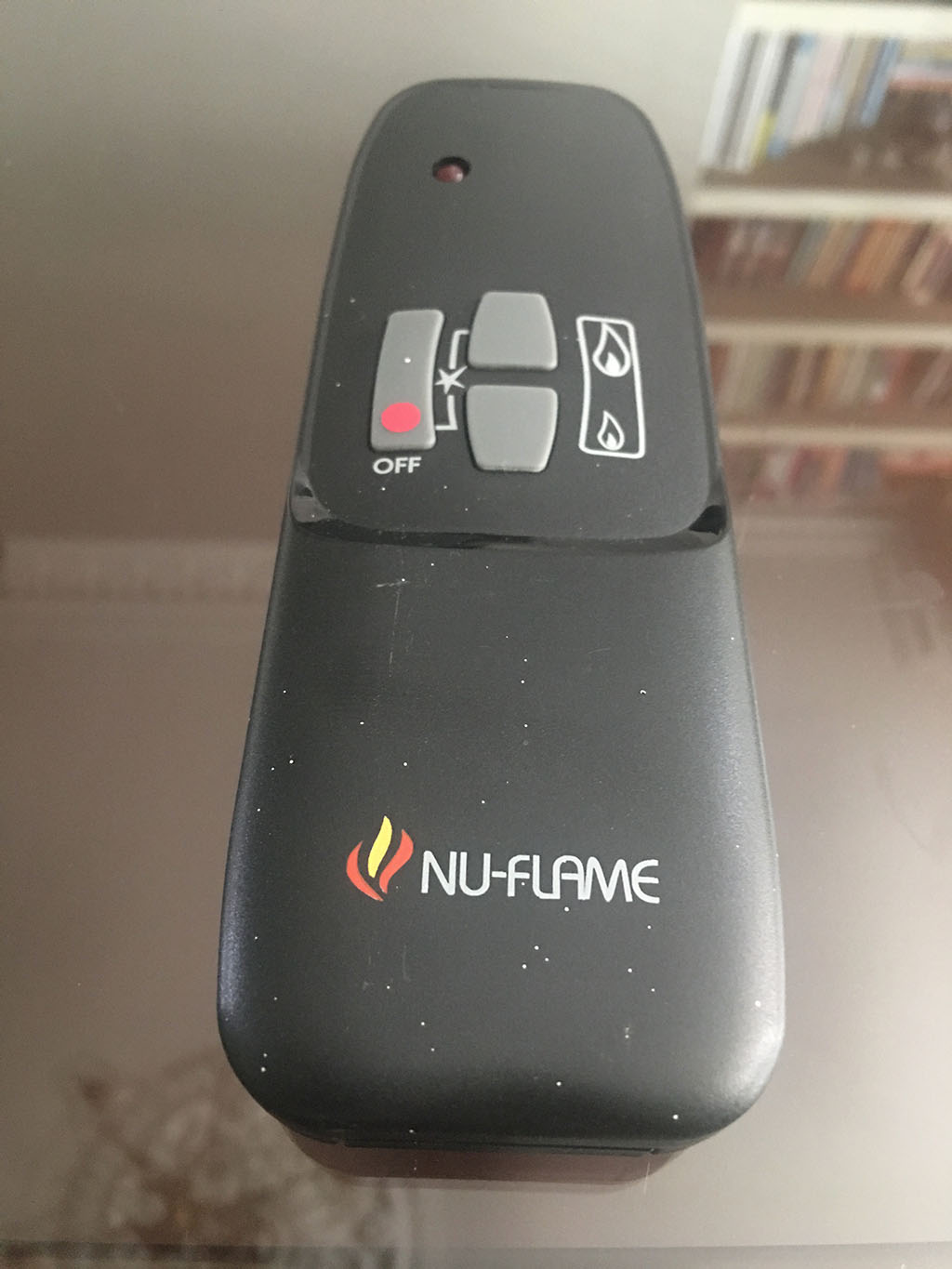 As a guest of the house you are free to use the fireplace. Sadly the remote (pictured at left) will not be winning any design awards for intuitiveness.